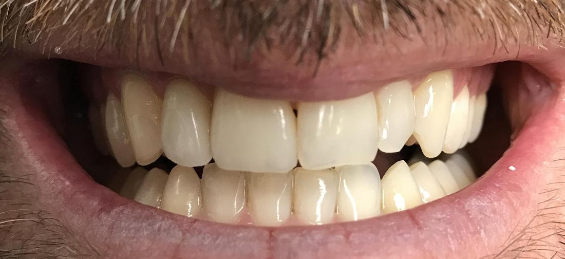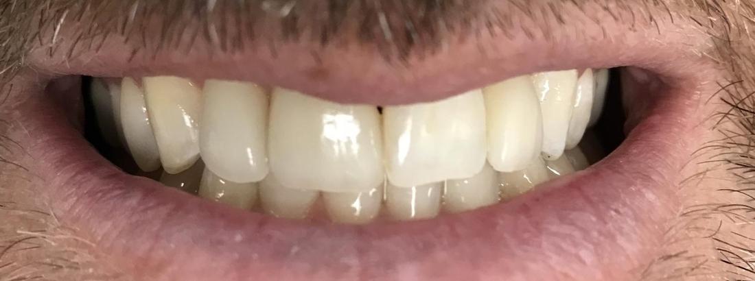 The veneer is designed to complement the patient's smile while also providing biting and chewing functions so he can eat with ease.